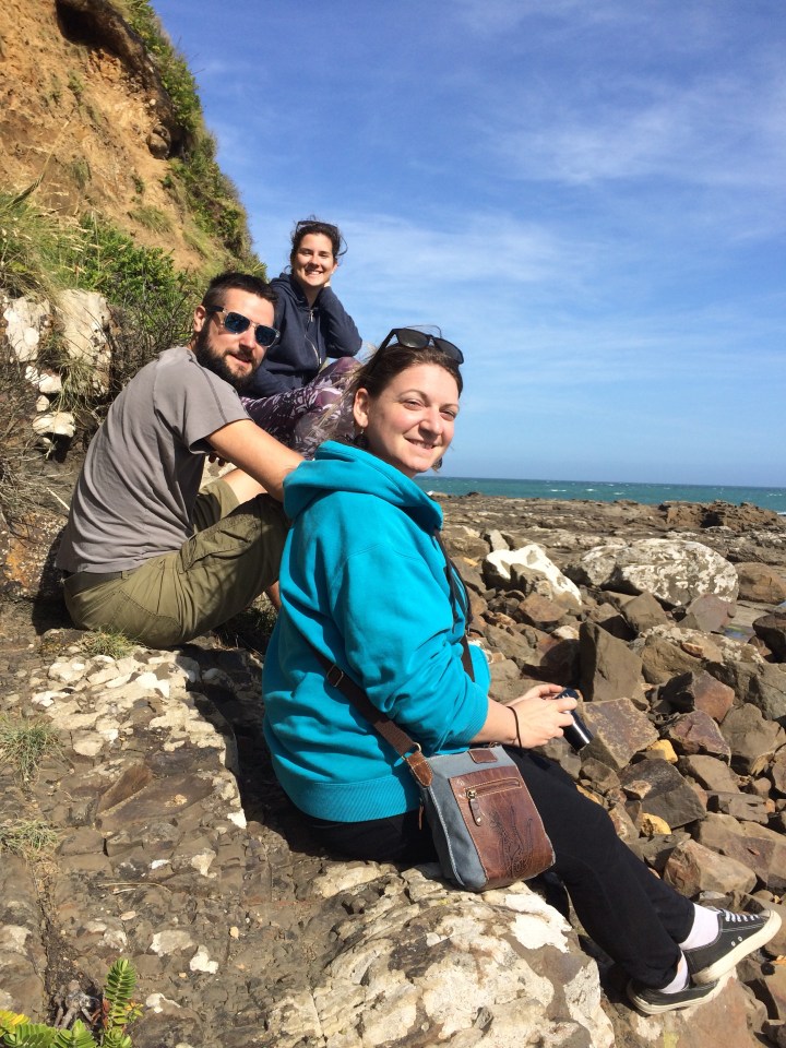 We couldn’t have asked for a more gorgeous day. We started the day with lunch in Invercargill, then stopped at Slope Point to take some photos, and headed for our final destination, Curio Bay. Laura was especially excited for the last adventure of the day as she was looking forward to seeing the yellow-eyed penguins. We thought the penguins would arrive out of the water by 7:00p, but they actually didn’t arrive until it was darker, around 9:30p. To be honest, I didn’t think they were going to show up at all. We were told that if the penguins see people on the beach, they wont get out of the water to avoid harm. There were probably thirty others waiting for this special event. Simon and I left Chantal and Laura so we could set up our tents and prepare camp. Just ten minutes into setup, Laura sprinted over to tell us the penguins had arrived. It was wonderful to see Laura’s expression, as neat as it was to see the cute penguins waddling around.