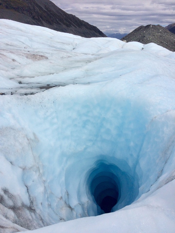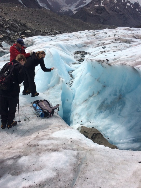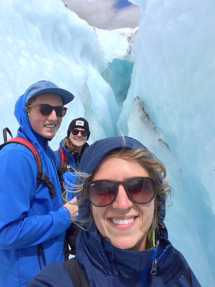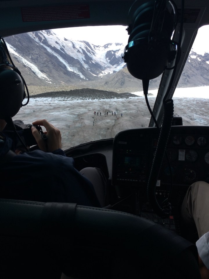 The next day was just as amazing. We lucked out once again and were able to board a helicopter that flew us to Tasman Glacier. The weather is constantly changing hour by hour in New Zealand so it’s not unusual for heli-hikes to get postponed or canceled. This would be my very first helicopter ride! Such a neat feeling… It feels like you’re levitating. Once we landed, we met with our guide who taught us how to walk with crampons (spikes fixed on the boot) and how to avoid getting injured or falling through a crevasse. As we walked along the glacier, we saw an avalanche in the distance. From where we were standing, it looked like snow falling off a roof of a rambler. Not a big deal… But then he said it would kill us. At that moment, I think we all realized how small we really were. The rest of tour consisted of history, facts, and ice cave exploration!