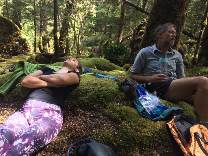 We were dropped off in the middle of “the bush” and reset seventy traps that are evenly spread out along the track (7k). Dave reset the rat and stoat traps with a new egg and a fresh piece of meat. The old egg was given to Chantal or I to toss into the bush. I reset the possum traps which was an easy task to do… Actually, none of them needed to be reset, but they were reset so I could reapply some blue peanut butter. During the walk, we took a memorable break on some really comfy moss and enjoyed the sounds of the swaying trees and singing birds (and took a mini nap).