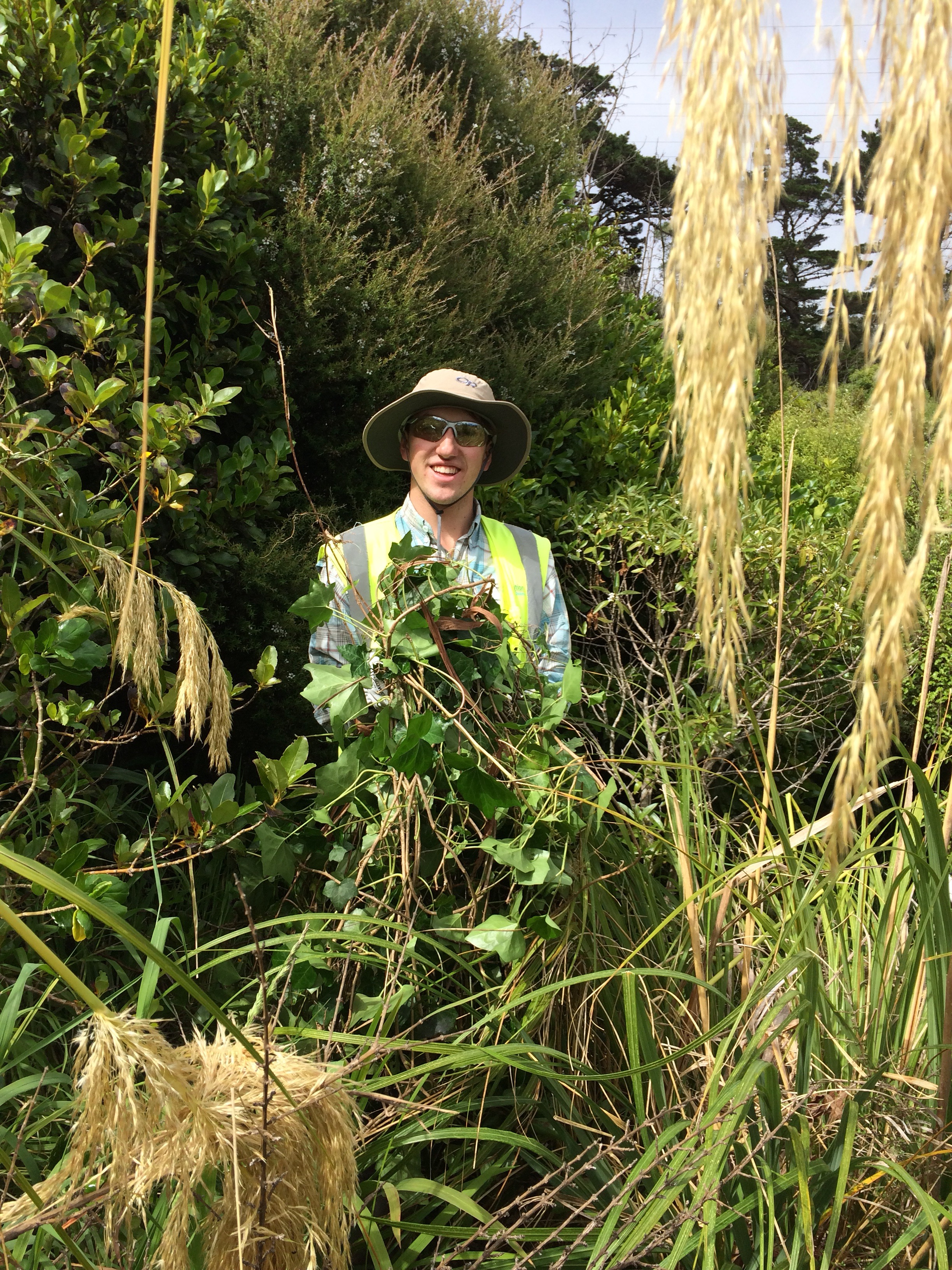 David picked us up and we drove to a super nearby trail that leads up to Mount Victoria. We were to remove wandering willy. It’s not super invasive that it kills plants, but it prevents new growth from occurring which can also be just as bad. Either way, that’s what we did… Cleared some wandering willy. We also came across some climbing asparagus which fascinated me (same reason ivy fascinates me).