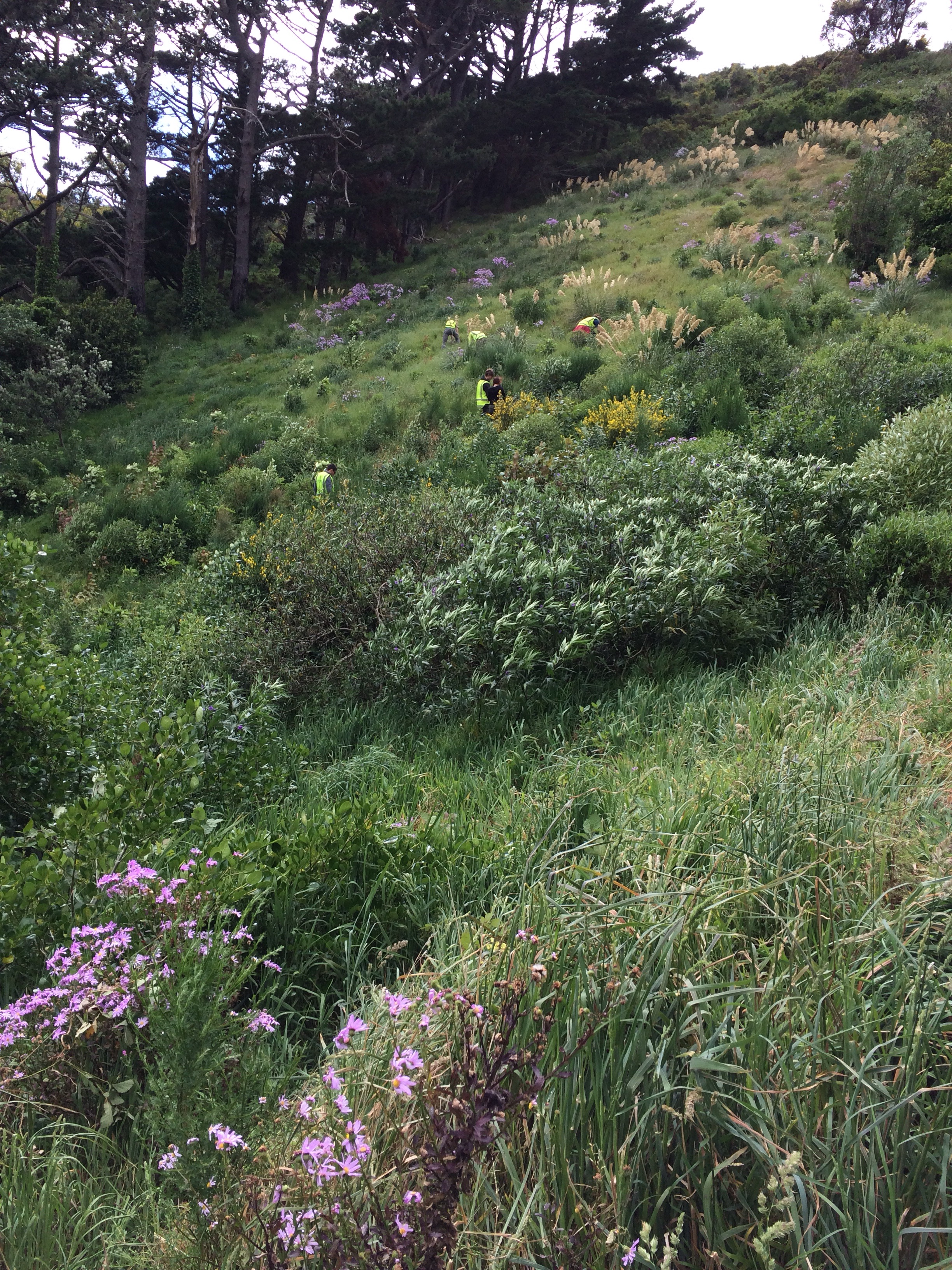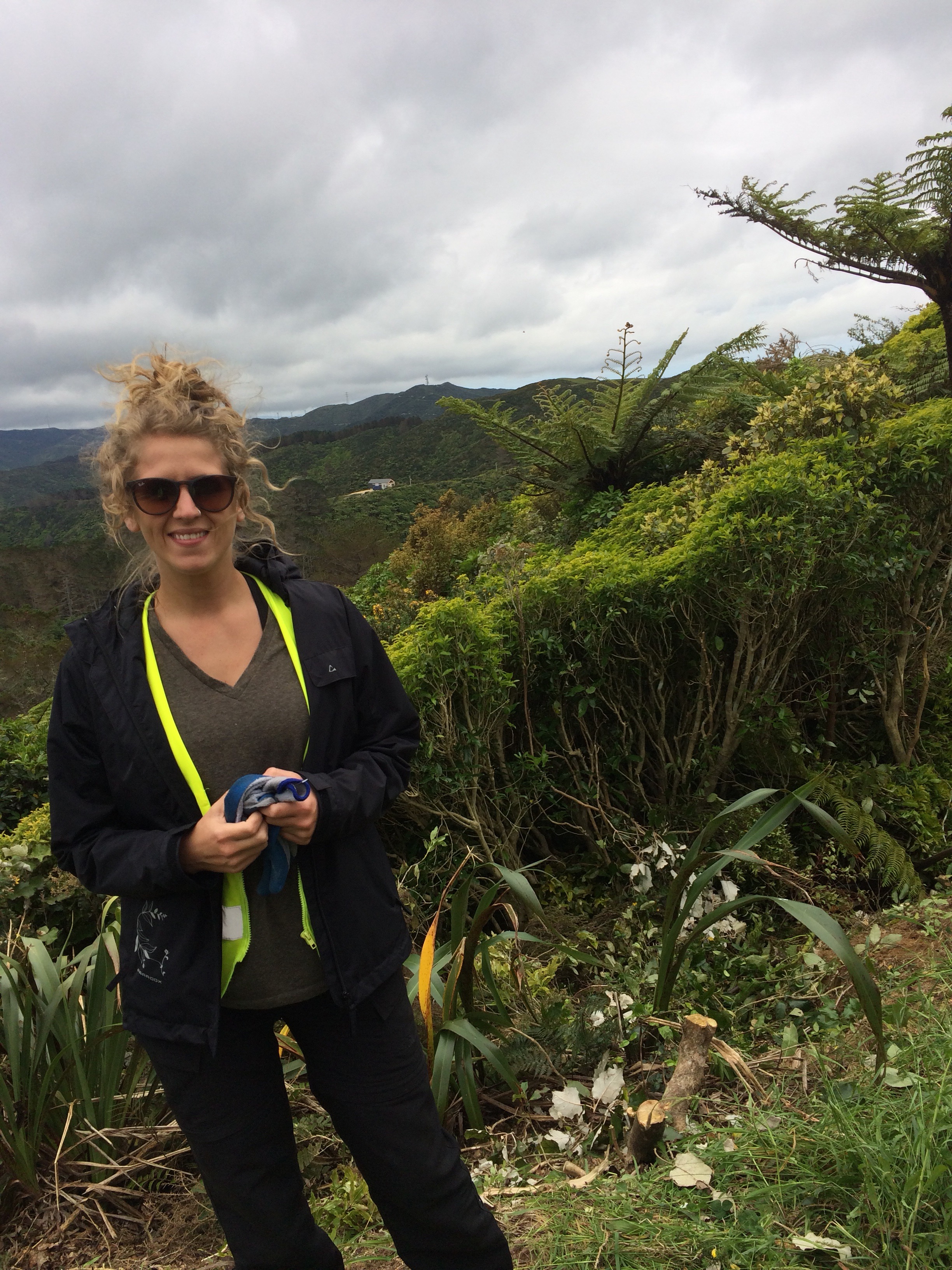 We were picked up by our team leader, David, at 8:30a. We headed out in the CVNZ van and pulled over at some random hill with lots of greenery (as is everywhere in New Zealand). We were to “release” newly planted trees.