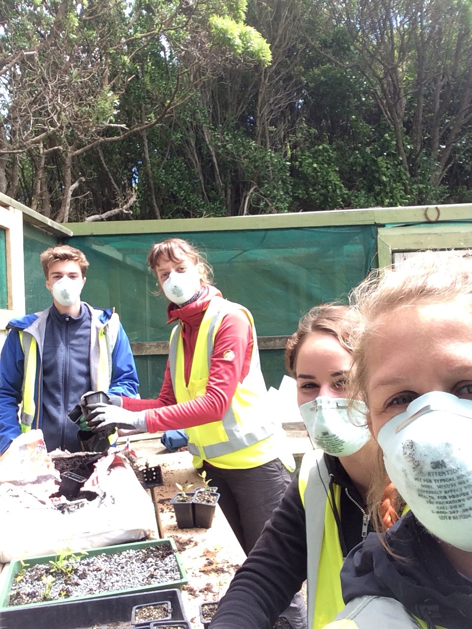 David directed us to remove plants that were in small plastic pots and to replant them in larger pots. We were transplanting native New Zealand plants that are part of the 100,000 others to be planted this year, quite the initiative.