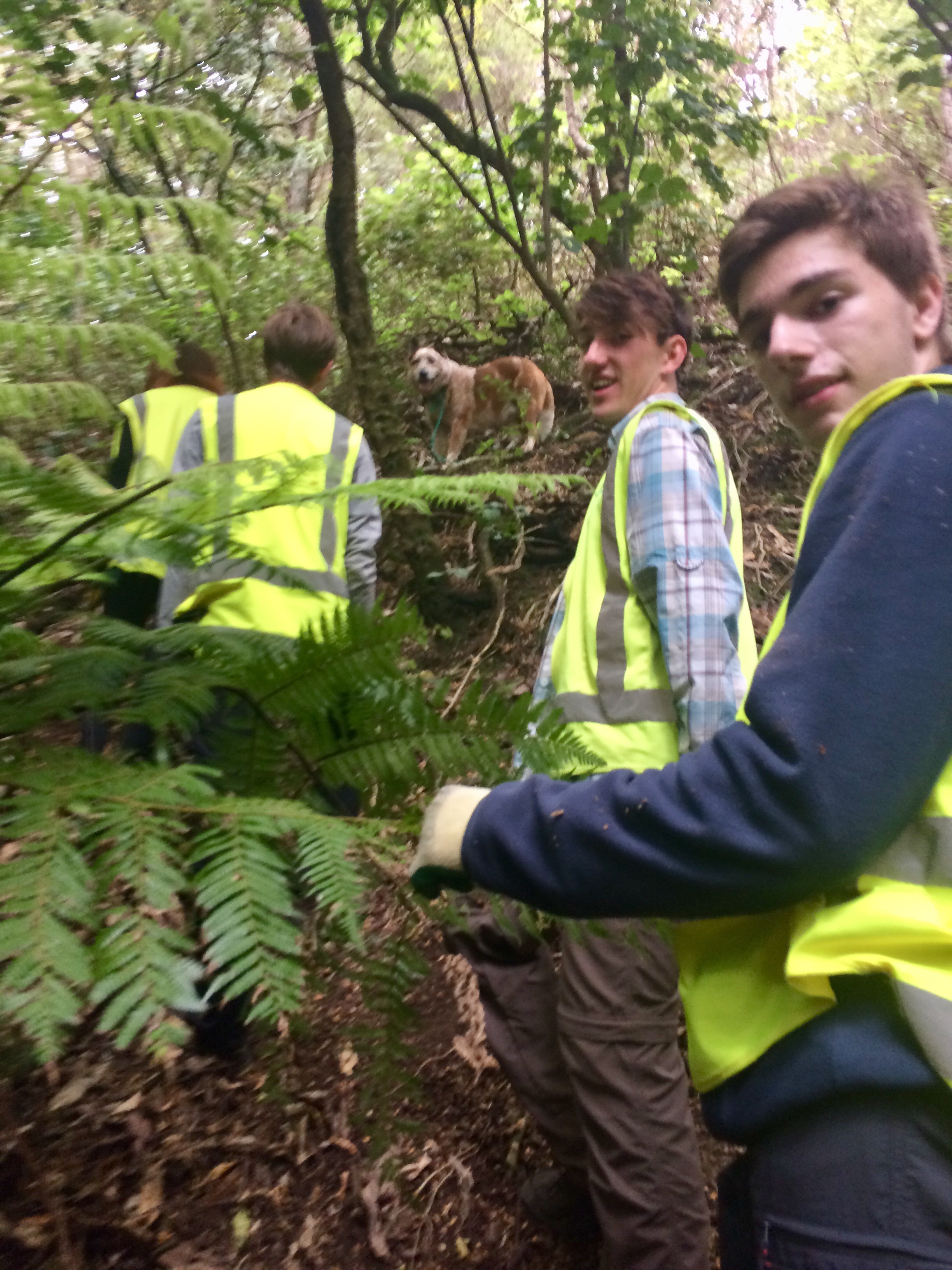 The group was split into two groups. Some of us went with Jeff and his dog to set up traps for pests and the other group went with Collin and his dog to clear a trek. I went with Collin, his dog, and some others.