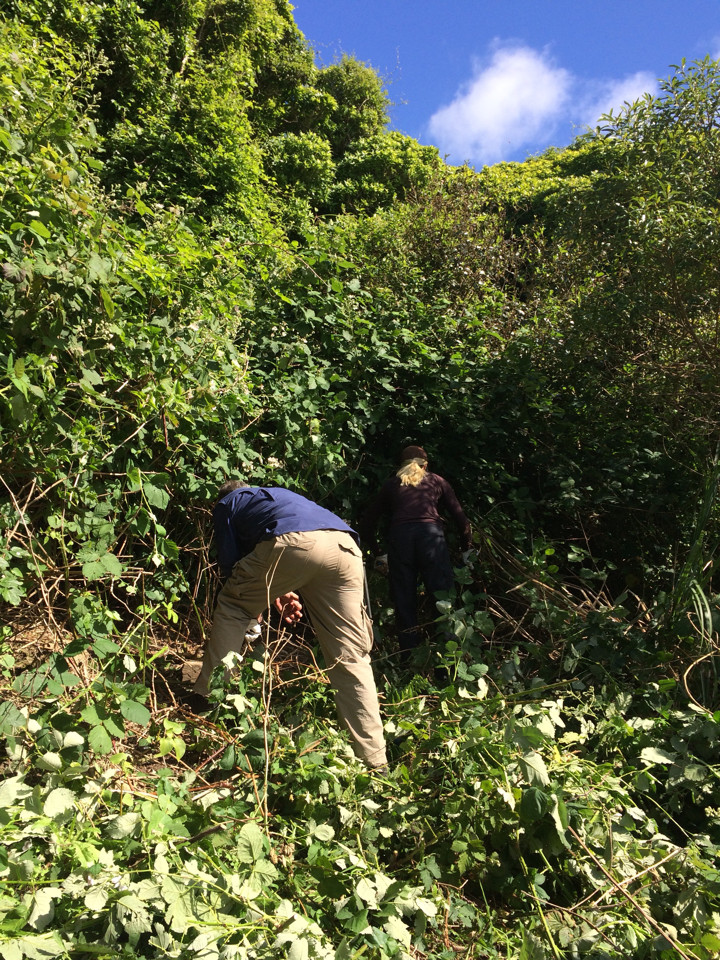 Today was a short day. David picked us up around 8:45a and we were back by 1:45p. We went to a common area to clear an area of blackberry bushes. Blackberries are not so invasive if they are managed, but if not, they take over.